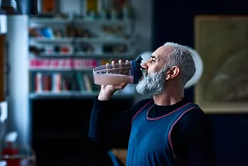Older man drinking smoothie for health entering my late 40s has given me a new perspective on what the aging process really is all about. I encourage all of my clients to stay consistent in all facets that lead to healthy aging. The simple formula is proper exercise, diet, and rest. Without going into great detail about each, staying on track in all three will ensure you get to where you want to be year after year.